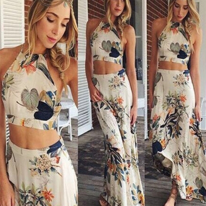 Once you wear this two-piece dress,all eyes will be focused on you. It features sweet floral print pattern.