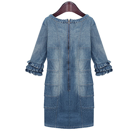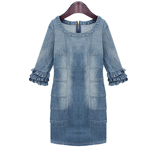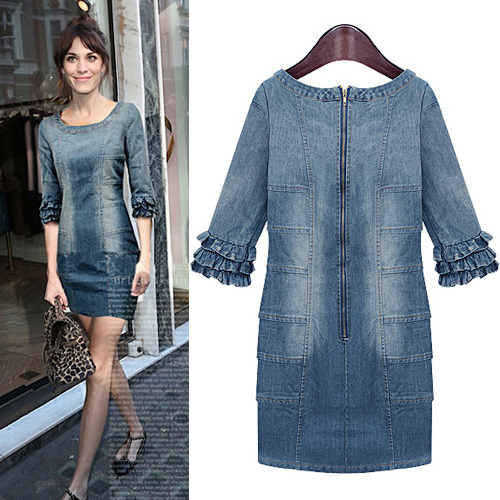 Denim dress can always bring you a kind of unique and stylish beauty. Like this dress,featuring round neck