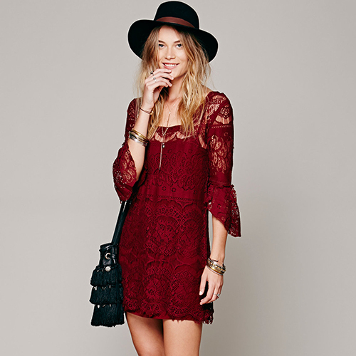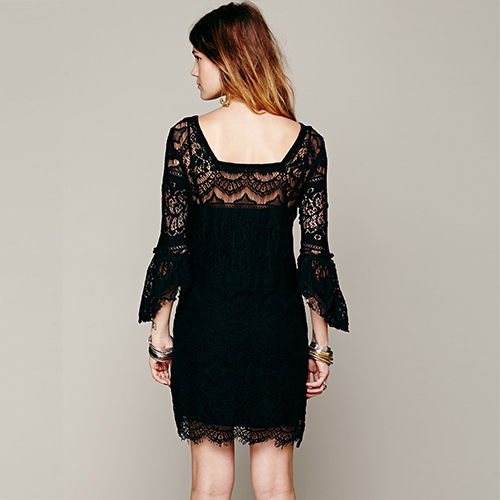 You are so cute and sweet once you wear this lace dress. It features square collar,