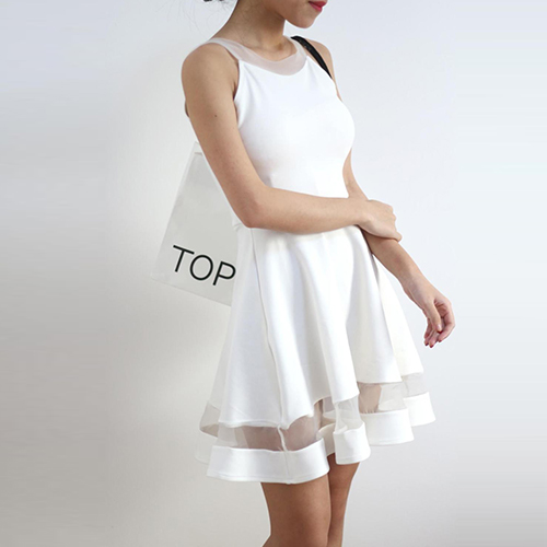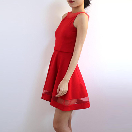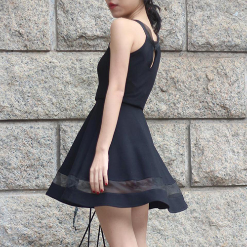 stylish dress for yourself,including this one. It features gauze spliced design,with sleeveless