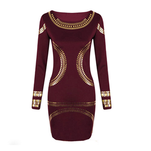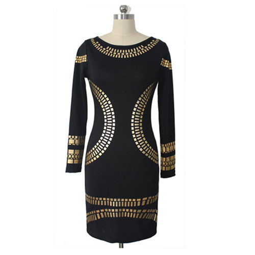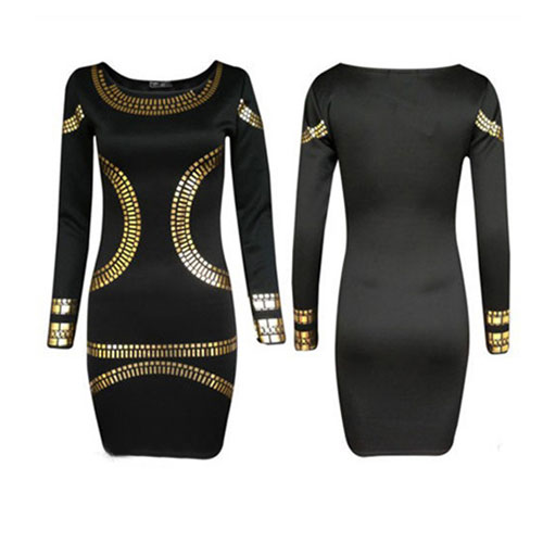 This dress features gold-tone floral print pattern,stylish and chic. Fashion round neck and long sleeve design,a good choice in spring and fall. And even in winter,you can pair it with coat and leggings.