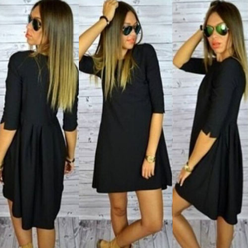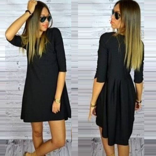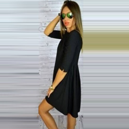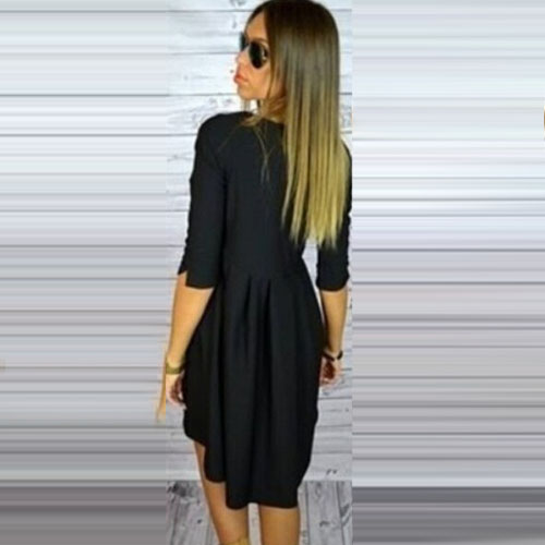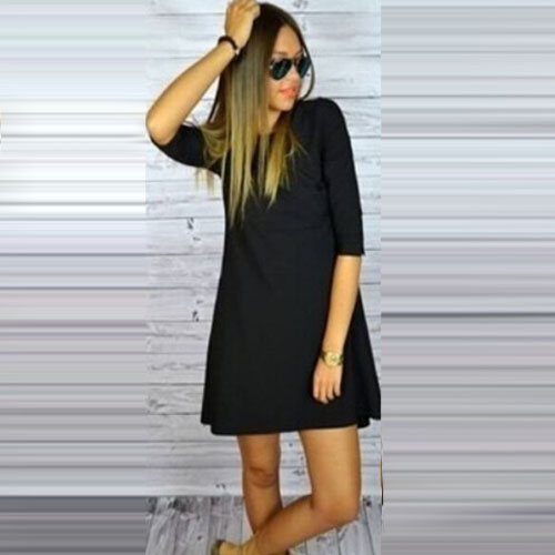 This dress is the perfect addition to your collection. Elegant solid color,with half sleeve,round neck and