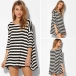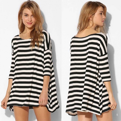 Stay comfy and stylish in this striped dress. It is outfitted with a round neck,half sleeve