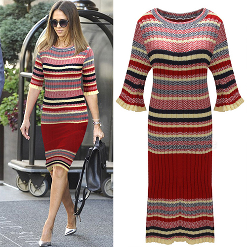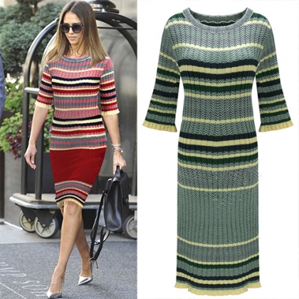 Striped style,with half sleeve and round neck design. In some cold day,pairing it with your coat