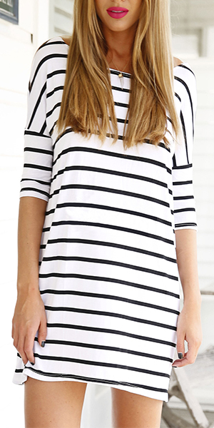 Your weekend calls for such a casual dress! Striped style,with a round neck and