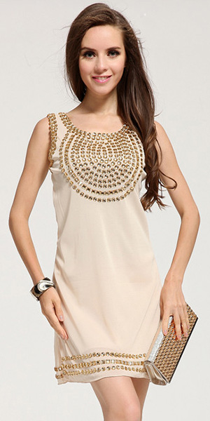Fashion Hand-beaded Sleeveless Round Neck Dress
