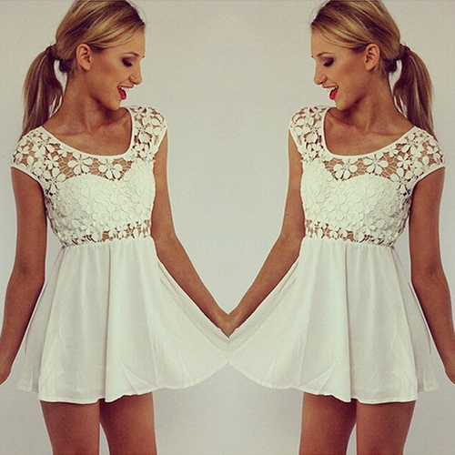 This dress is characterized by hollow out crochet lace spliced design,looks sweet and feminine.