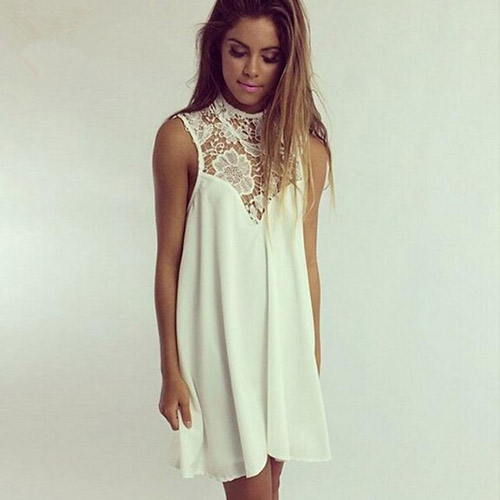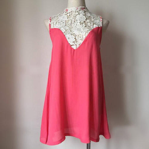 Combination of lace and chiffon elements,chic and stylish. Lace spliced design,sleeveless
