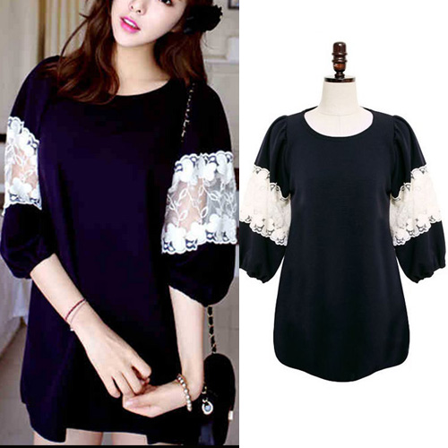 You will absolutely love it at your first sight. It features classical round neck,3/4 puff sleeve with lace spliced design,unique and fashion. Pair it with a black shoulder bag and ankle boots,you are leading the fashion road.