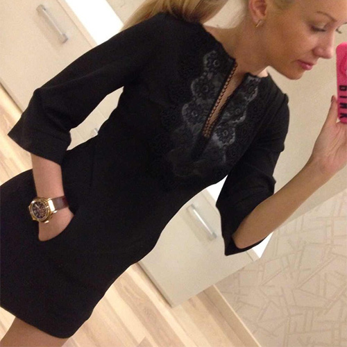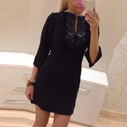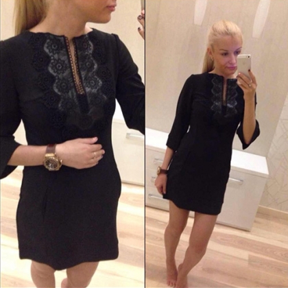 Stay stylish and chic in this dress. It feature black color,mysterious and elegant. Neckline with lace for decoration,