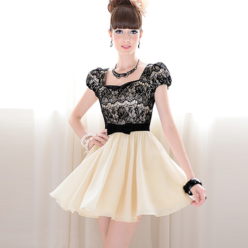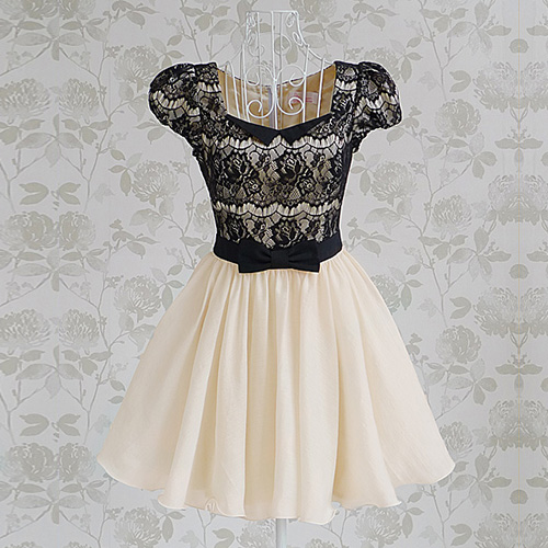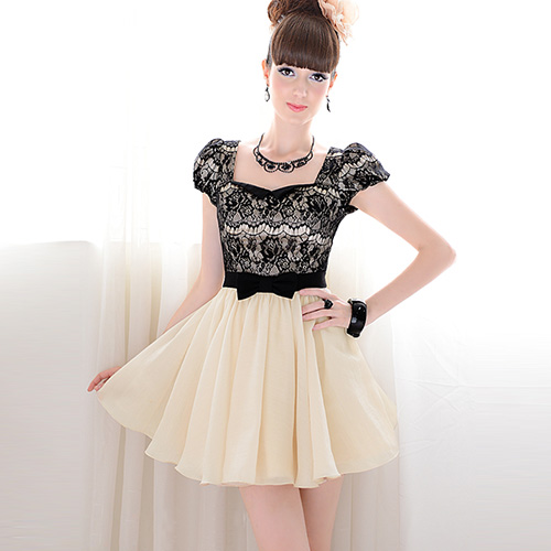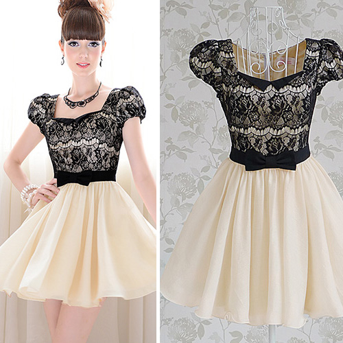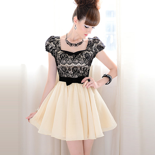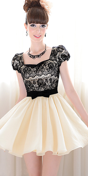 This dress features lace spliced design,making it look so sweet and feminine. Puff sleeve and
