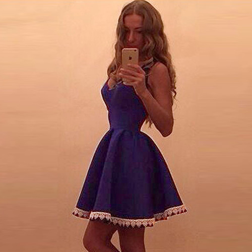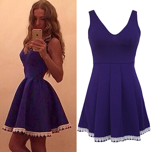 just like this sleeveless number. With a lace spliced hemline design makes it so