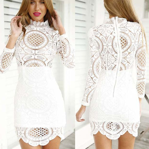 Show your mature woman charm and sexy flavor through this dress. Hollow out lace spliced style,