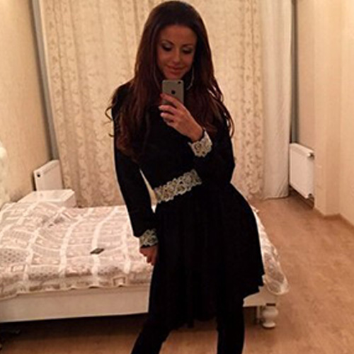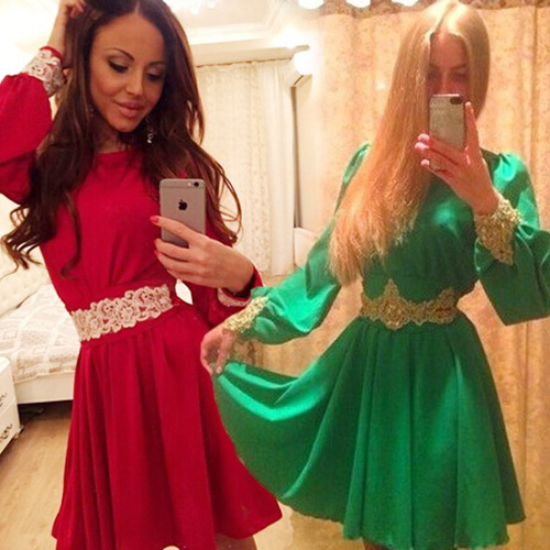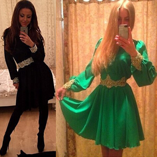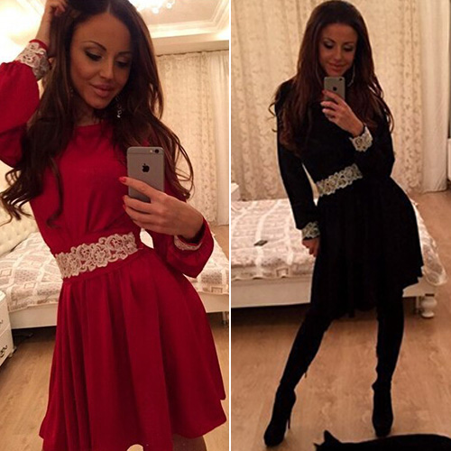 Add this stylish dress to your wardrobe to make it more wonderful. Cuff and waist part with lace spliced design,