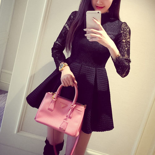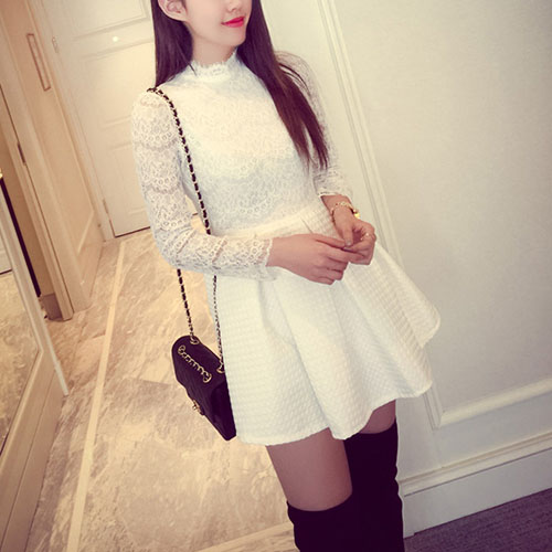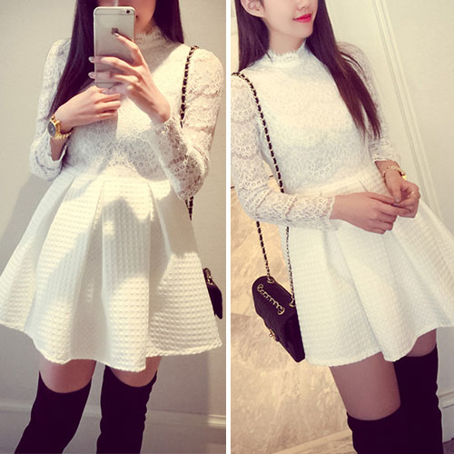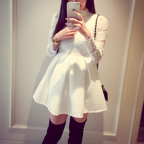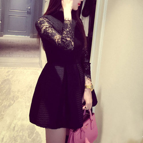 This dress features lace spliced style,filled with feminine and sweet sense. Long sleeve,