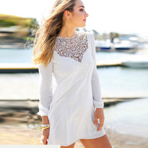 Just like this dress,simple but not simple. Lace spliced design,adding its feminine and sweet