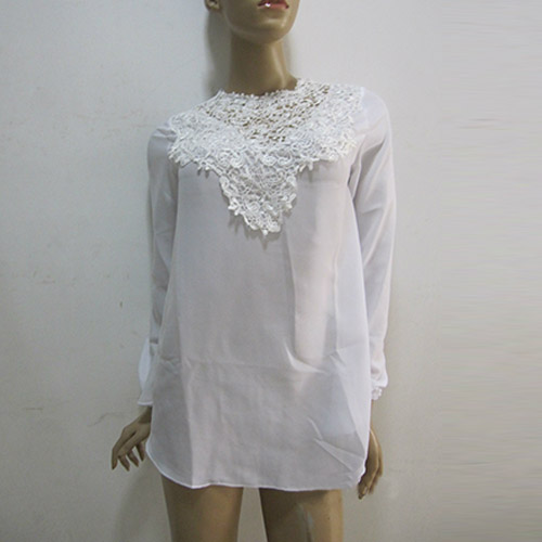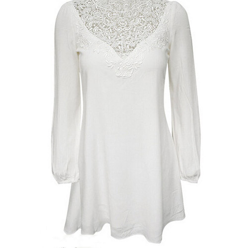 Fashion Lace Spliced Long Sleeve Loose Chiffon Dress