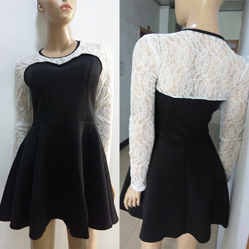 Combination of fashion,elegant feminine and comfortable feeling. This dress features lace spliced design,