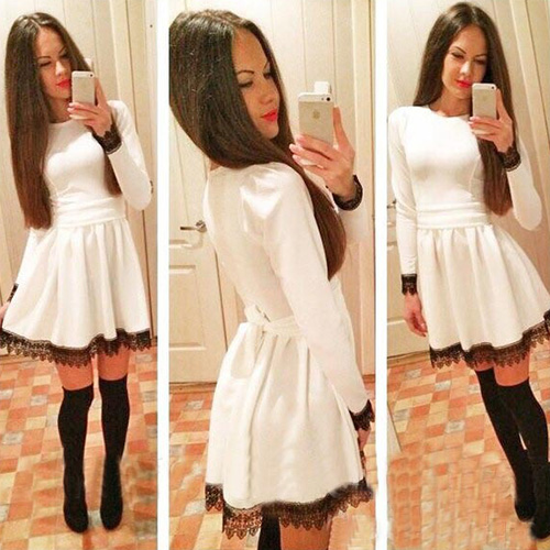 waist design,can perfect show your graceful posture. Lace spliced design makes it look more sweet and feminine.