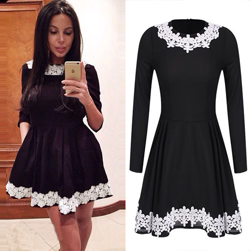 the blend of stylish and elegant. Long sleeve,round neck and high waist style. Plus,its lace