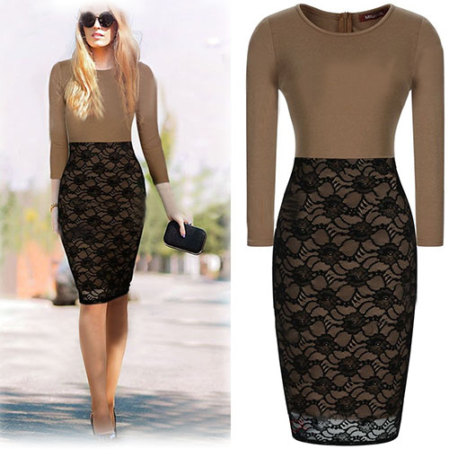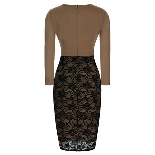 Lace spliced style,stylish and feminine. This dress features long sleeve,round neck and slim fit design,