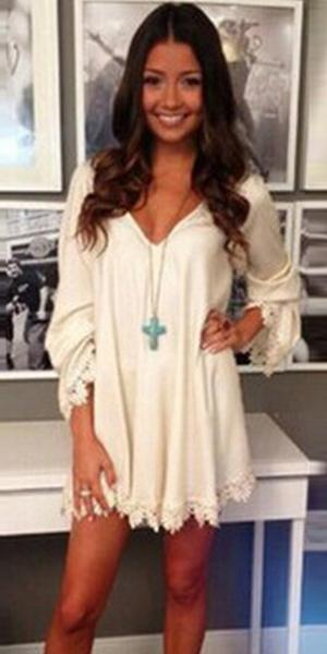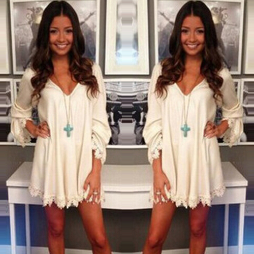 can give you a charming and relaxed look! Solid color style,with lace spliced,v-neck and