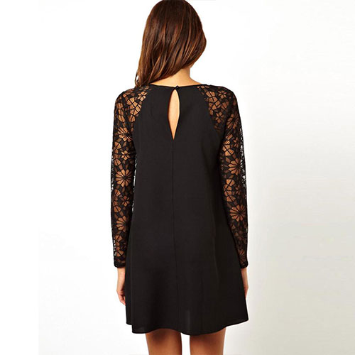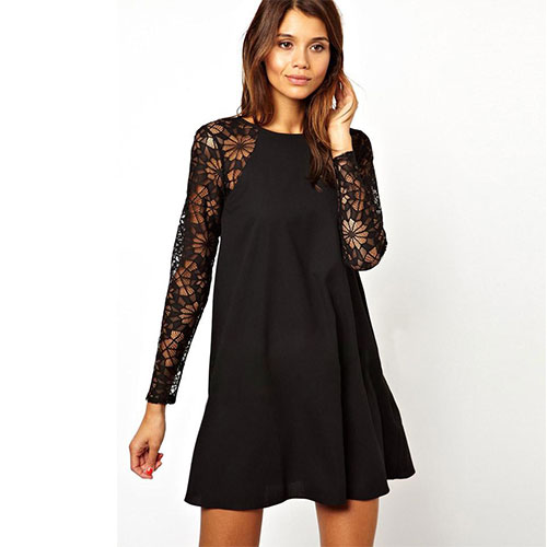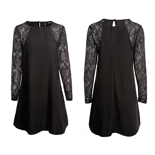 Featuring lace spliced design in shoulder and sleeve part,sexy and charming. Classical round neck and long-sleeved design. Style it with a high-heeled shoes.