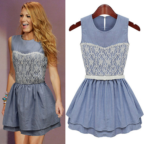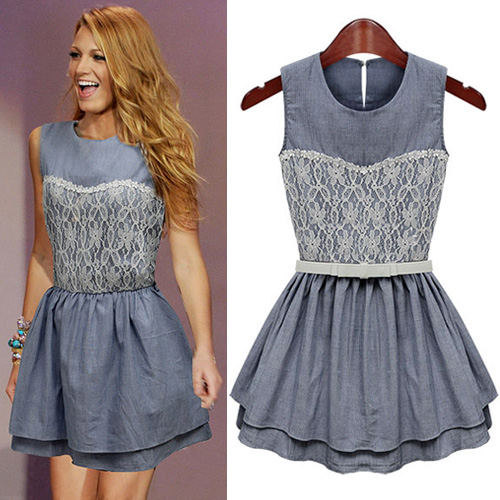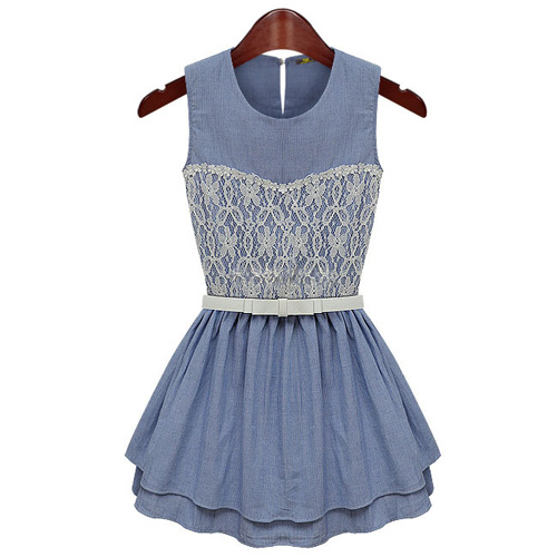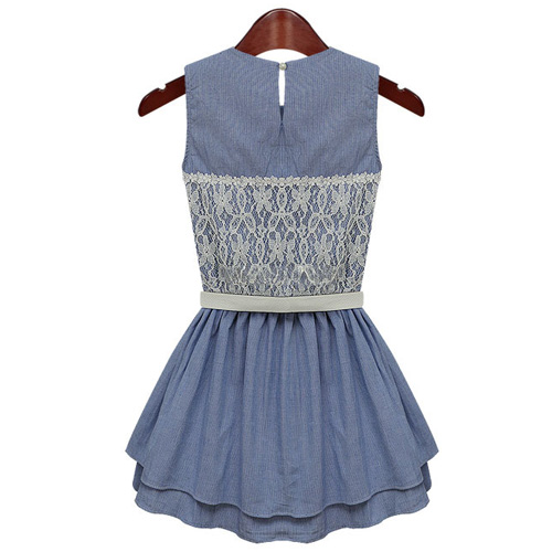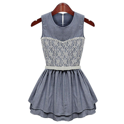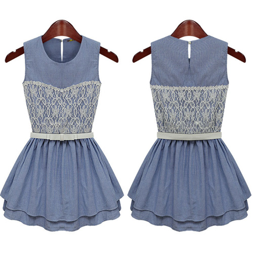 Elegant lace spliced design makes this dress more feminine and attractive. Sleeveless,round neck and