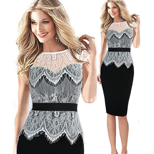 Show your charming femininity and elegant temperament with this dress. It features lace spliced design,sweet and fashion. Sleeveless,high waist,package hip and slim fit design,perfect outline your charming figure.