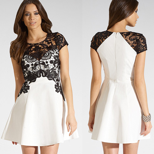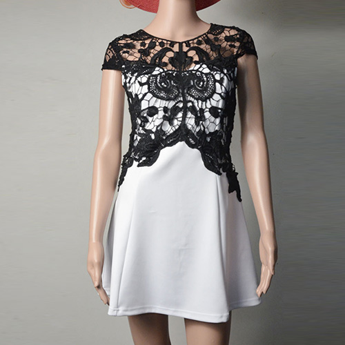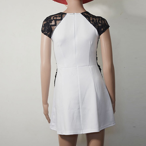 This dress features hollow out lace spliced design,sexy and feminine. Short sleeve,