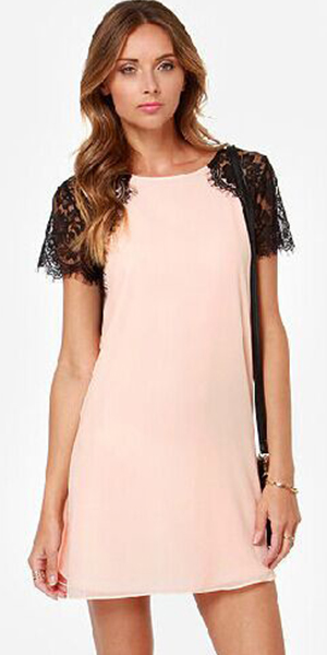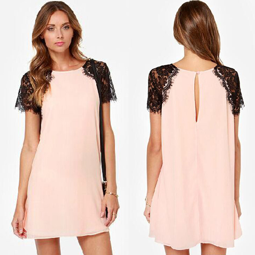 Lace spliced short sleeve design makes it look more sweet and eye-catching.