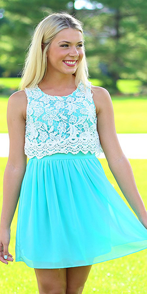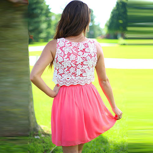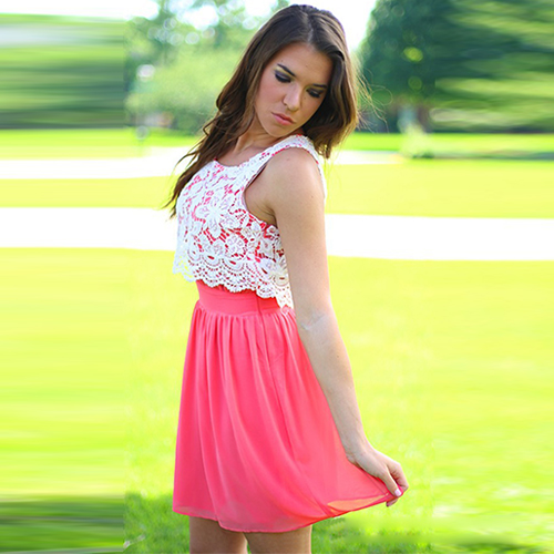 Combination of lace and chiffon elements,so feminine and stylish. Sleeveless,round neck
