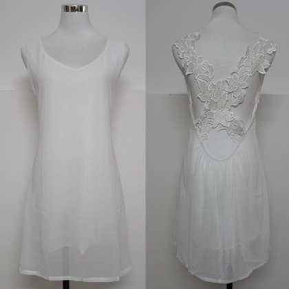 Fashion Lace Spliced Sleeveless Chiffon Dress