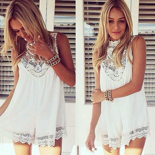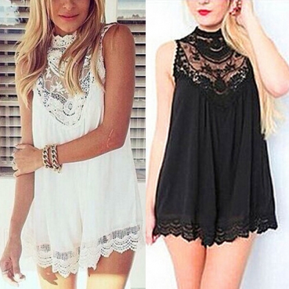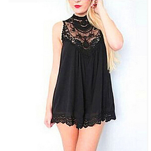 Lace spliced design makes it so feminine. Loose silhouette with sleeveless