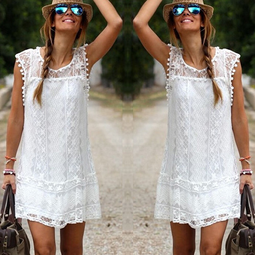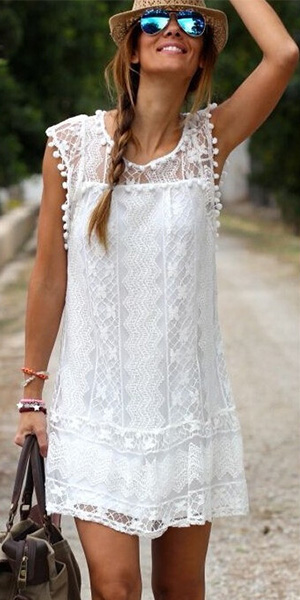 eye-catching and stylish. Lace spliced design makes it more feminine. Sleeveless and round neck