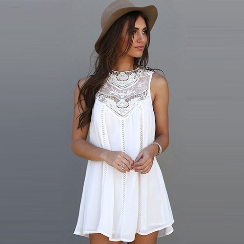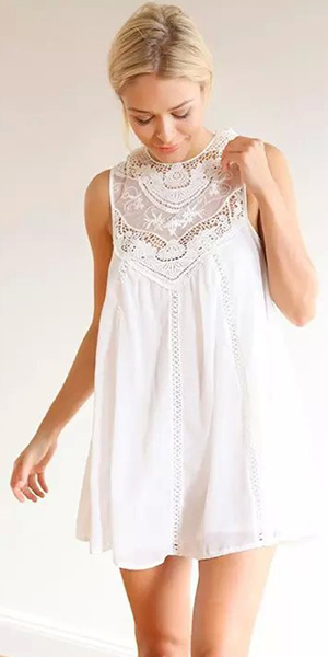 fashion sense. Round neck with lace spliced design makes it look more feminine and sweet.