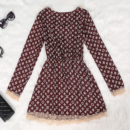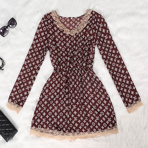 This dress features chic floral print pattern. Neckline,cuff and hemline with lace spliced design,adding its sweet