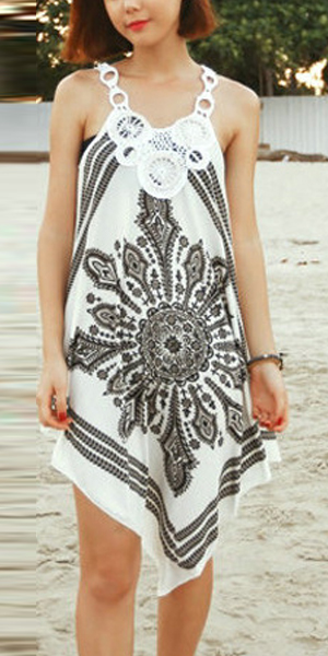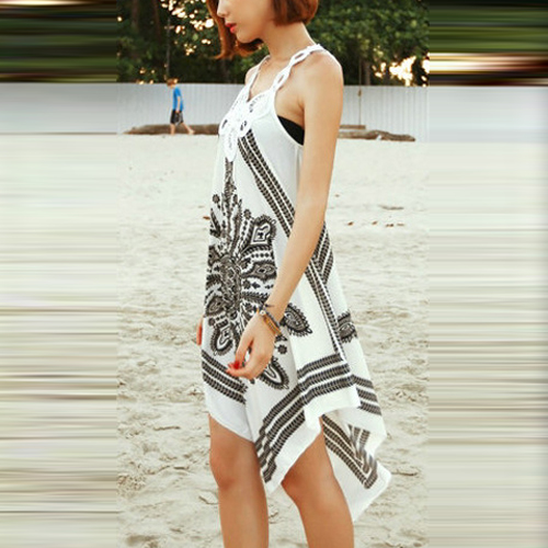 Fashion Lace Spliced V-neck Loose Irregular Beach Dress