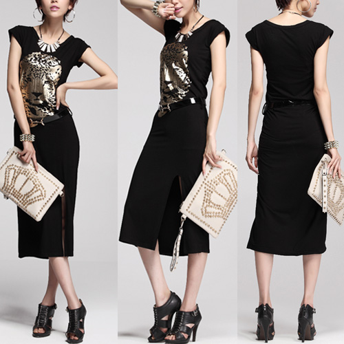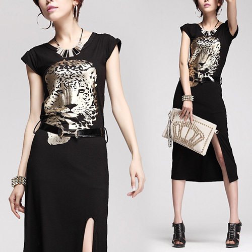 Front with leopard head pattern,chic and vivid. Short sleeve,round neck,