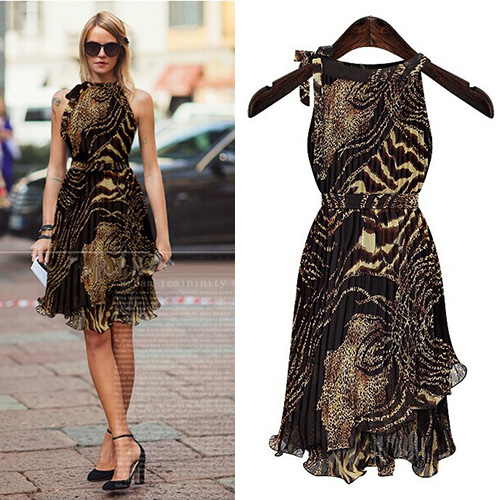 Crafted from sheer chiffon material,soft,skin-friendly and comfortable. This dress features leopard print,sleeveless style,high waist and irregular hemline design. Wearing it to show your elegant temperament and charming curve.