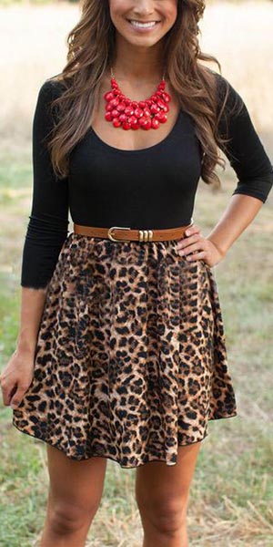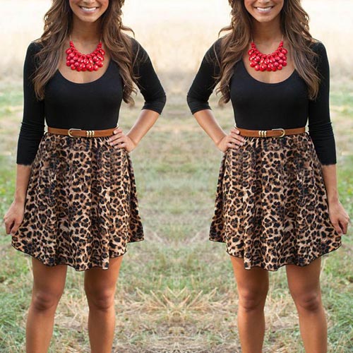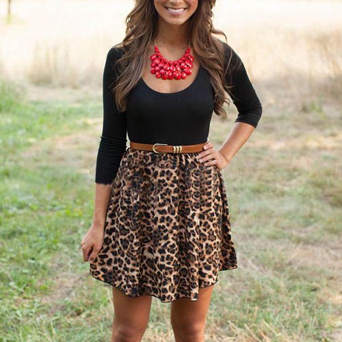 This dress is equipped with a leopard spliced hem,long sleeve and round neck,looks simple and stylish.