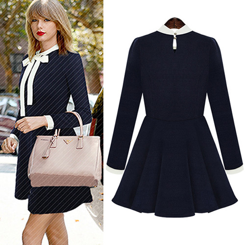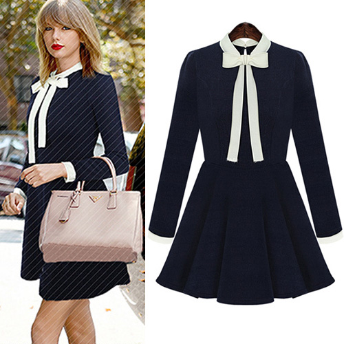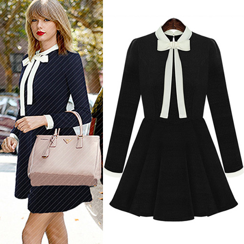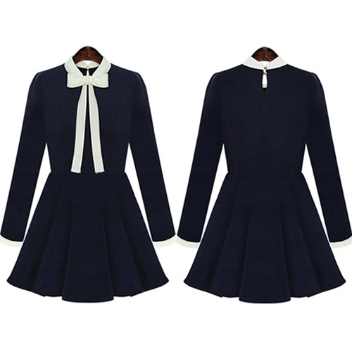 You can gain the stylish and comfortable feeling in this dress. Chic bowknot collar makes it look sweet and lovely.