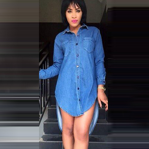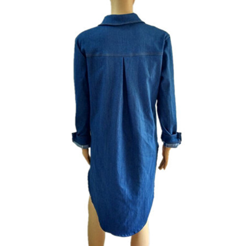 Fashion Long Sleeve High-low Hem Denim Shirt Dress