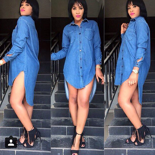 this long sleeve denim shirt dress is an essential wardrobe. Enjoy the