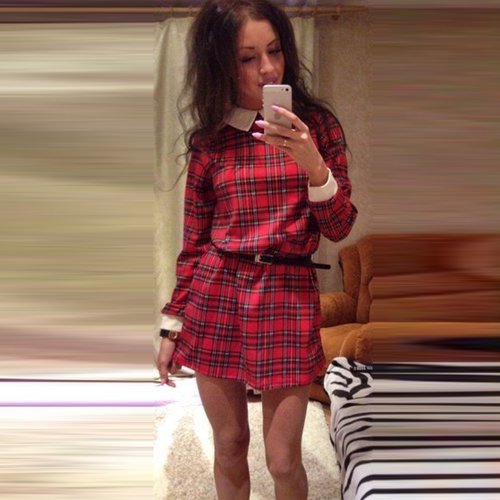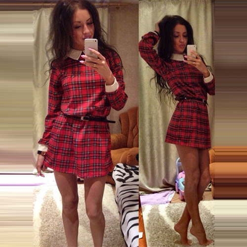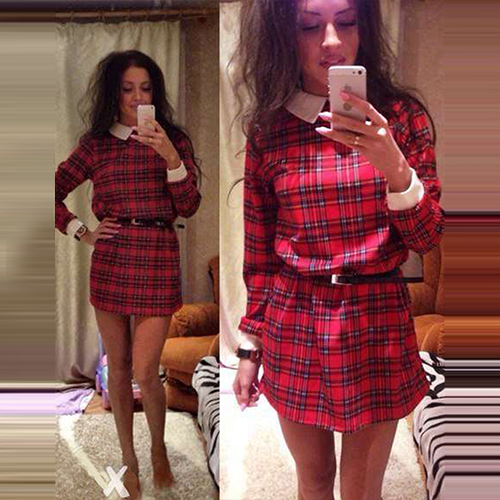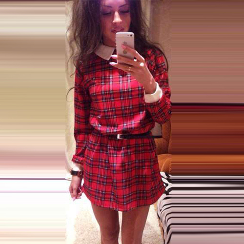This long-sleeved dress features an all over plaid pattern,its POLO collar design makes it look more