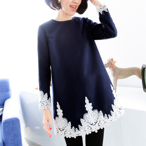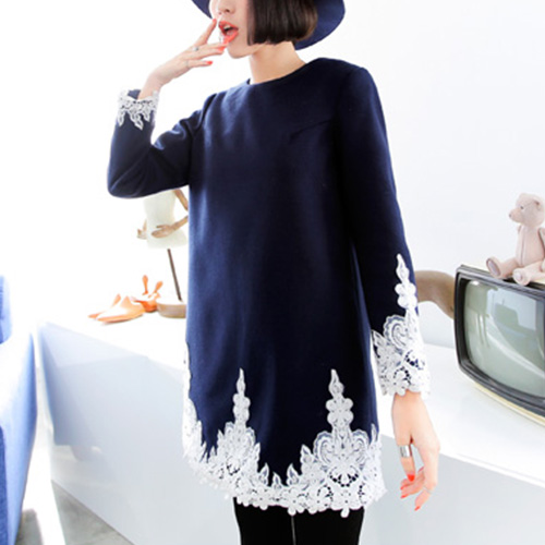 Cuff and hemline with embroidery lace spliced design,sweet and stylish. Pairing it with your coats and leggings,