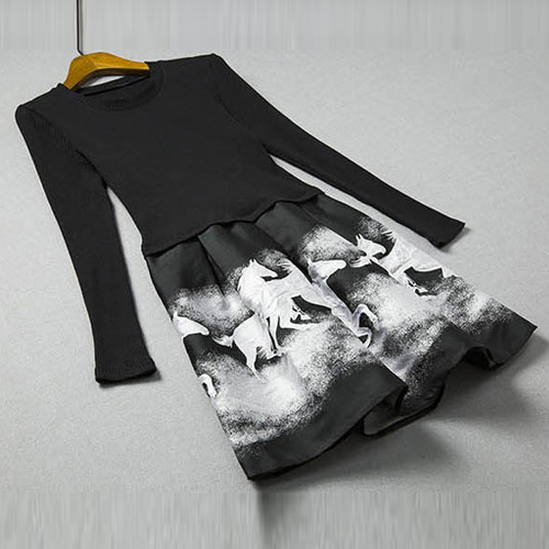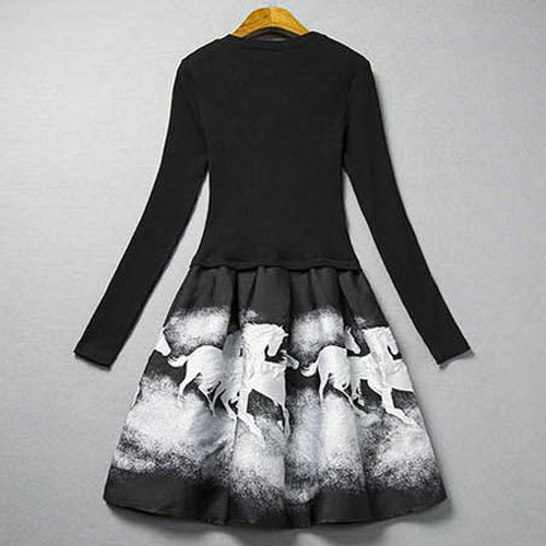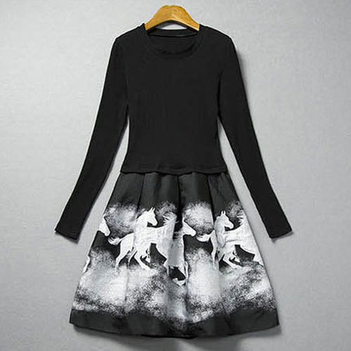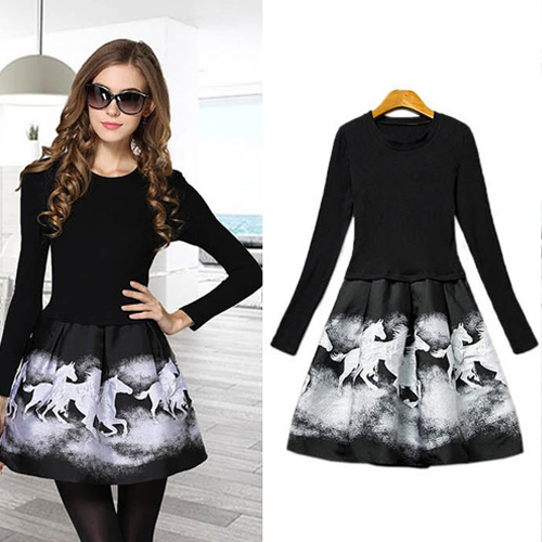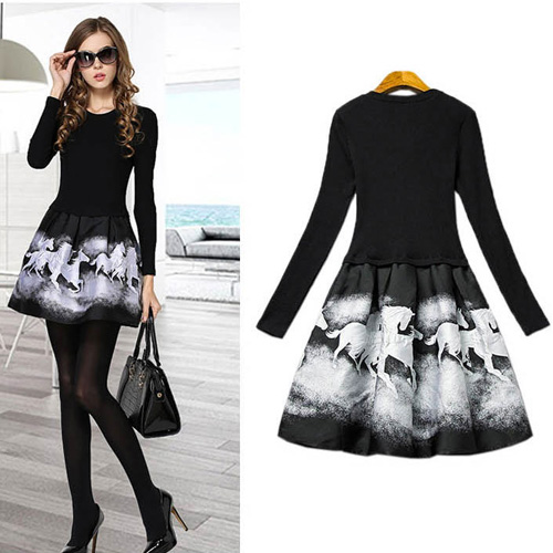 Hemline with steed pattern,chic and vivid. Pair it with your black stockings and coat in cold days.