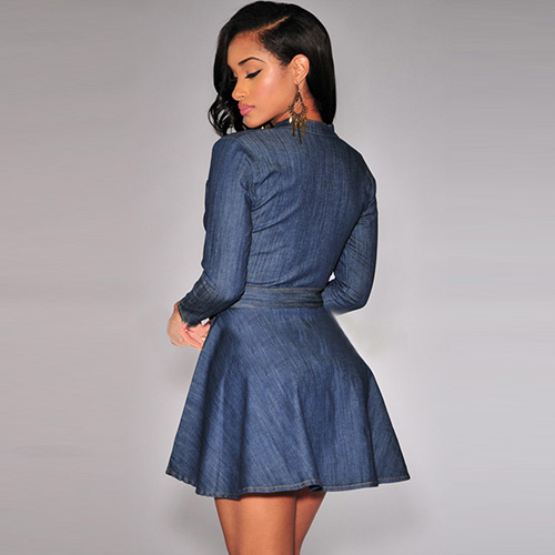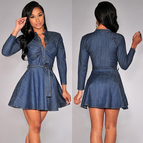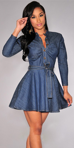 Achieve a charming and stylish style with this long sleeve denim dress. It's outfitted