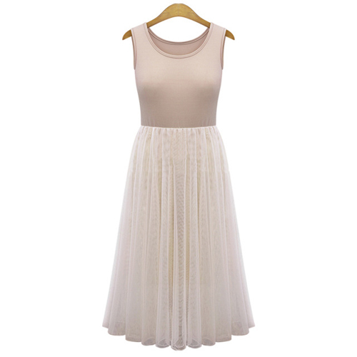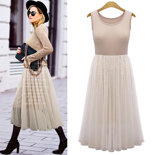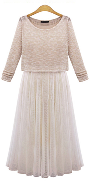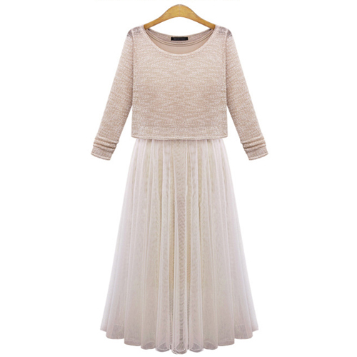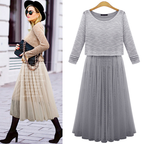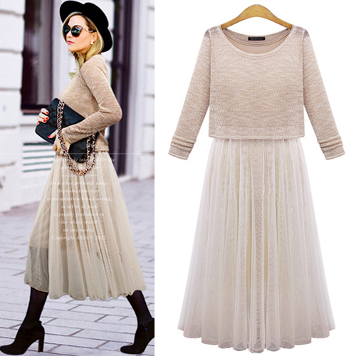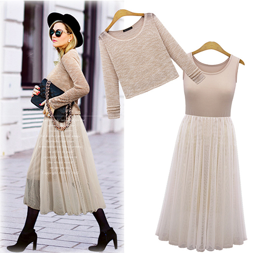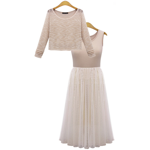 Fashion Long Sleeve Tops + Sleeveless Gauze Dress Two-piece Set