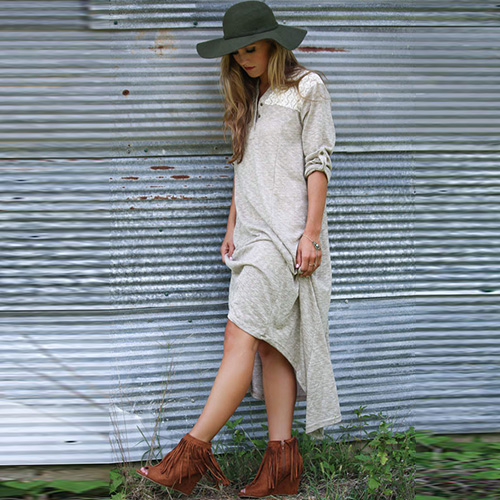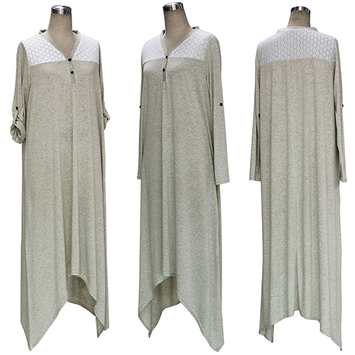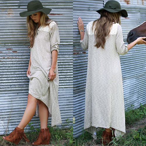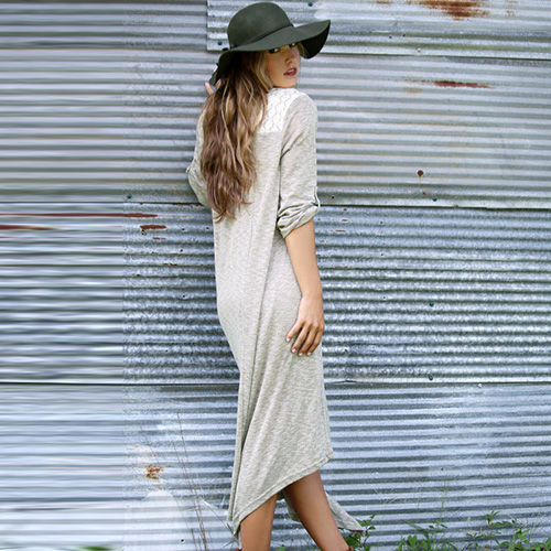 Features lace spliced style,with long sleeve,v-neck and irregular hem design,chic and stylish. Paired